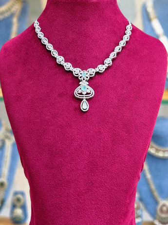 Indulge in luxury with our Diamond Necklace Set. Made with a stunning silver polish and adorned with sparkling diamonds, this set will elevate any outfit and make you stand out with elegance and sophistication. Perfect for special occasions or as a statement piece, this set is a must-have for any jewelry collection.