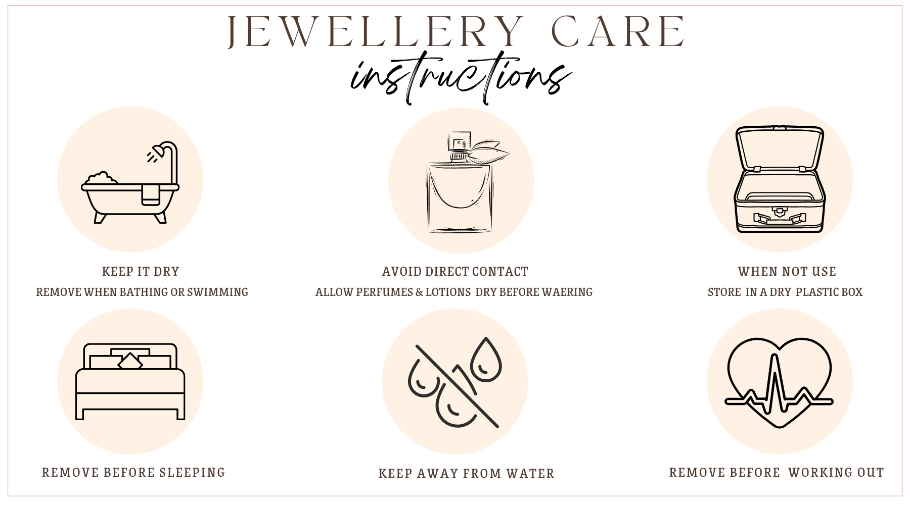 Avoid contact with Water, Perfumes and Cosmetic. When not in use, store your jewellery in a cool and dry place.