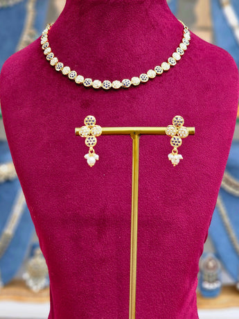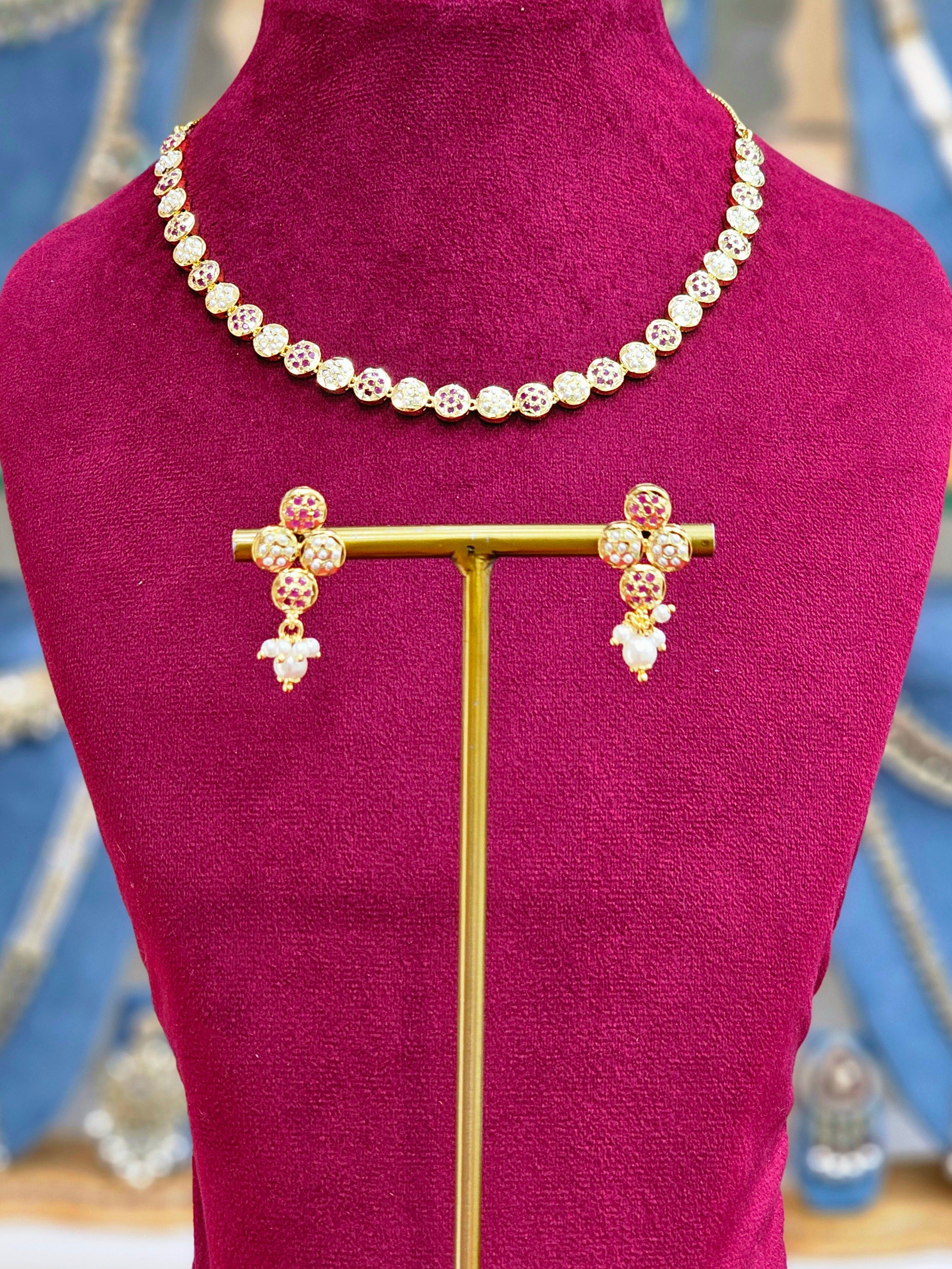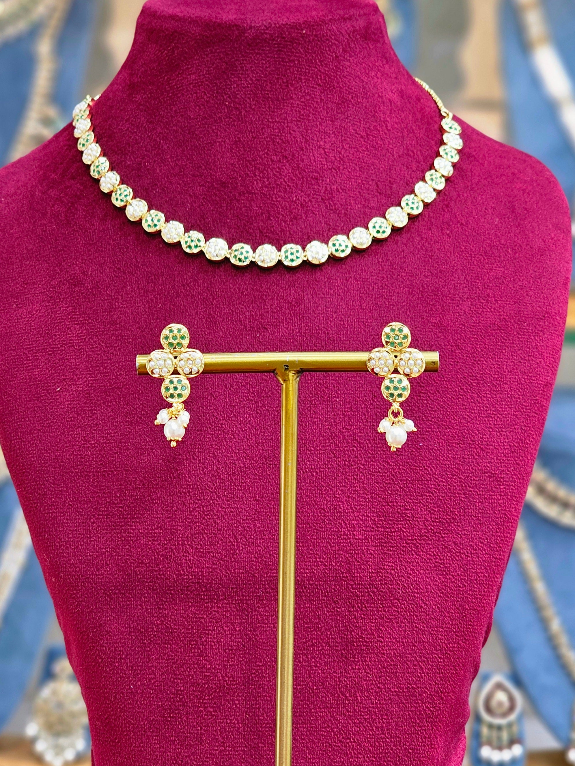 Add a touch of traditional elegance with our Jadaau Necklace Set! Featuring a stunning pearl drop and intricate gold polish, this set is perfect for any special occasion. Its unique three-color design is sure to make a statement and elevate any outfit. Make a lasting impression with our Jadaau Necklace Set!